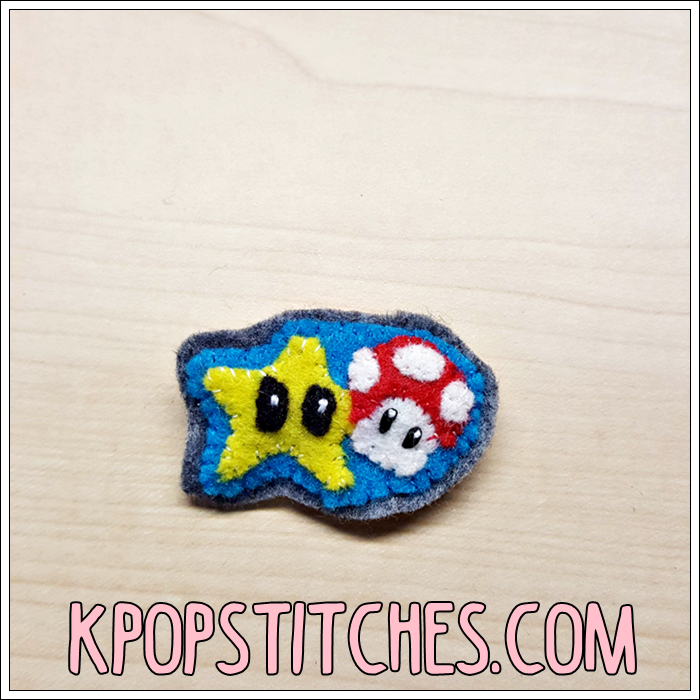 Mushroom & star felt pin brooch Nintendo Mario