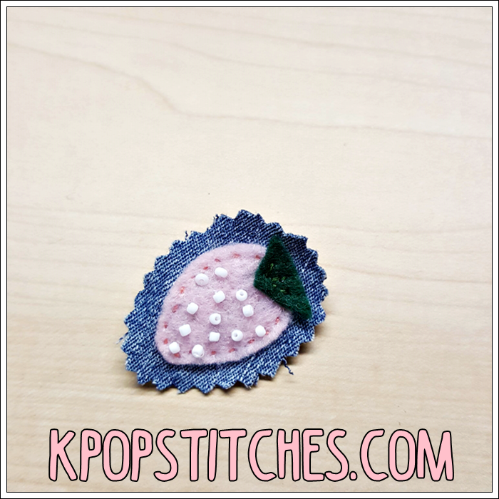 Pink strawberry berry felt pin brooch beaded